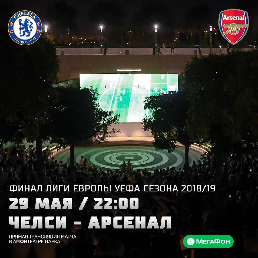 В парке Краснодар вечером 29 мая в прямом эфире покажут финальный матч Лиги Европы, в котором встретятся Челси и Арсенал <img src="https://www.yuga.ru/media/04/62/photo_2019-05-28_20-38-02__sgg17gp.jpg" hspace="5" vspace="5" align="left" />