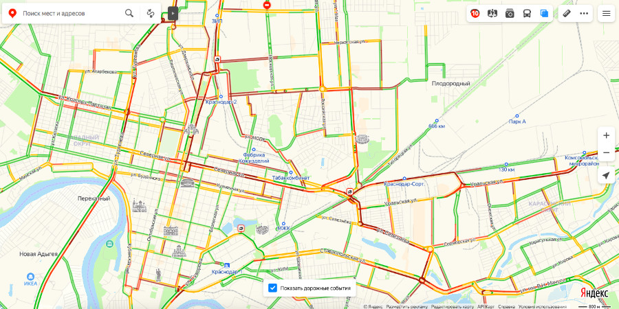 Об этом говорят данные сервиса «Яндекс.Карты» на 17:50 14 сентября. kuban24.tv »
