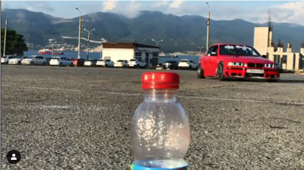 Стритрейсер из Новороссийска открыл бутылку бампером машины во время дрифта
