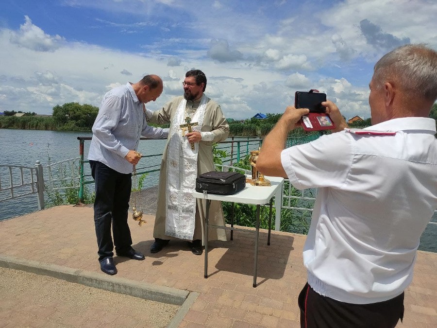 В Динской заработал пляж, который освятил местный батюшка