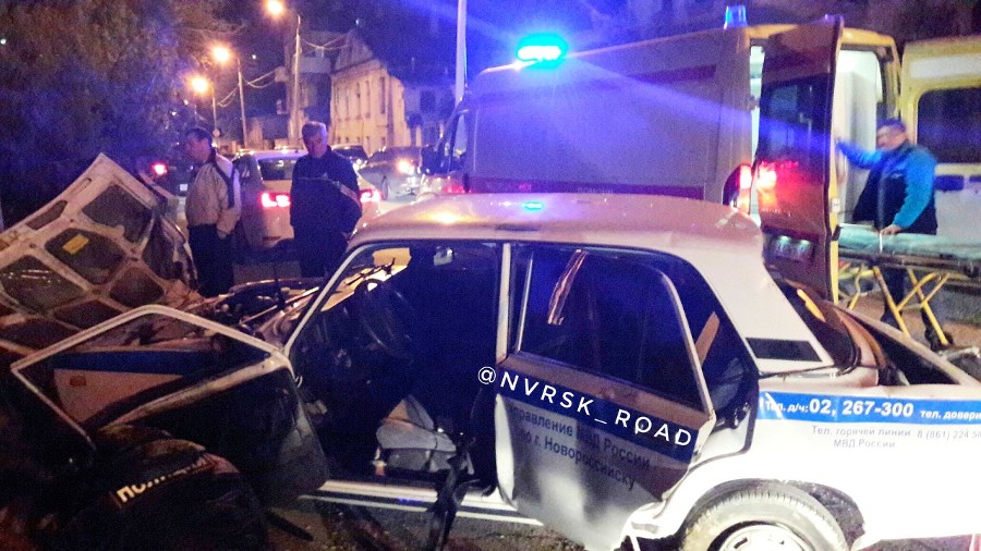 В Новороссийске вечером 19 апреля патрульный автомобиль врезался в микроавтобус, пострадали два человека. kuban24.tv »