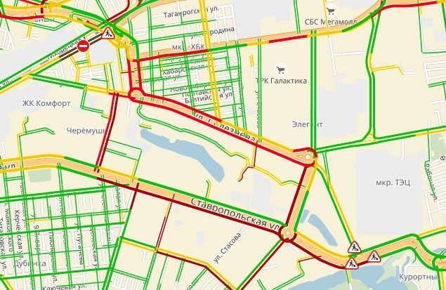 Из-за ремонта на этих улицах транспорт движется по одной полосе. kuban24.tv »