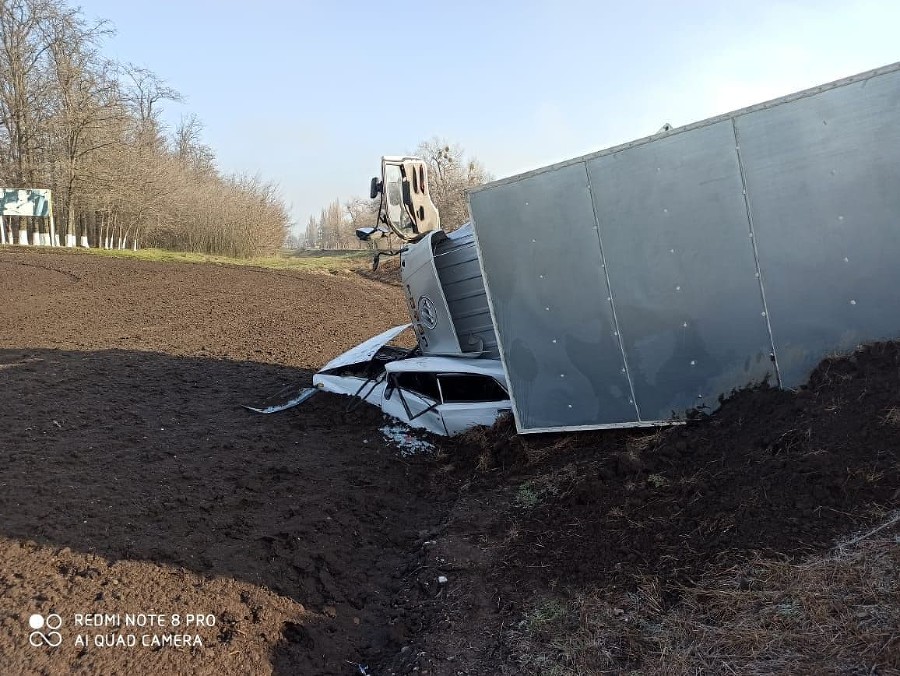 Под Новороссийском перевернулся грузовик с зерном. Ранее горожане просили запретить зерновозам ездить по дорогам