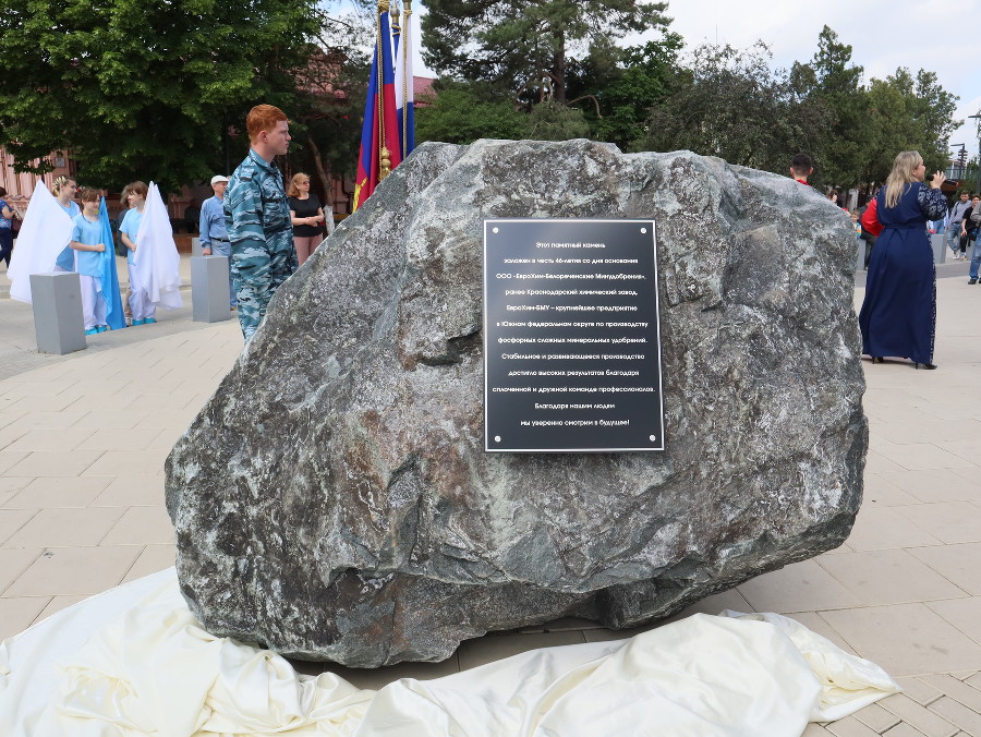 На центральной площади имени 50-летия Советской власти в Белореченске торжественно открыли памятный камень в честь градообразующего предприятия — ЕвроХим-БМУ <img src="https://www. yuga. ru/media/d7/99/10_pad20230528T184622__n4dmzon. yuga.ru »