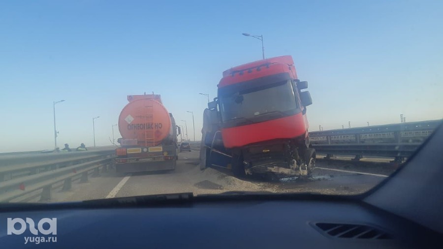 На Крымском мосту 29 июня закрыли одну полосу в сторону Кубани из-за ДТП с грузовиком <img src="https://www. yuga. ru/media/a4/87/2020-06-29_193917__uvzbrlm. jpg" hspace="5" vspace="5" align="left" /><img src="https://www. yuga.ru »