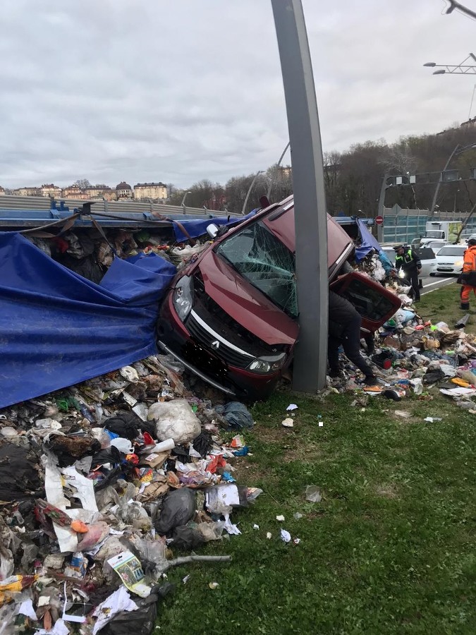 Мусор рассыпался по проезжей части. kuban.aif.ru »
