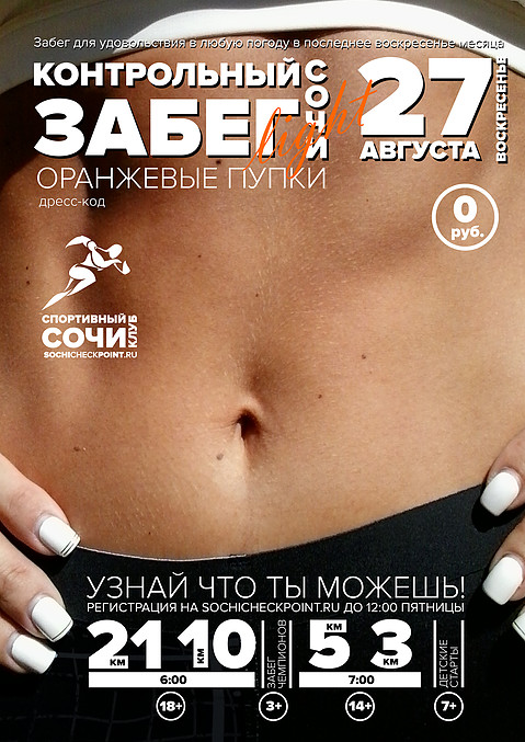 В Сочи на Имеретинской набережной Олимпийского парка 27 августа состоится Контрольный забег «Оранжевые пупки» yuga.ru »