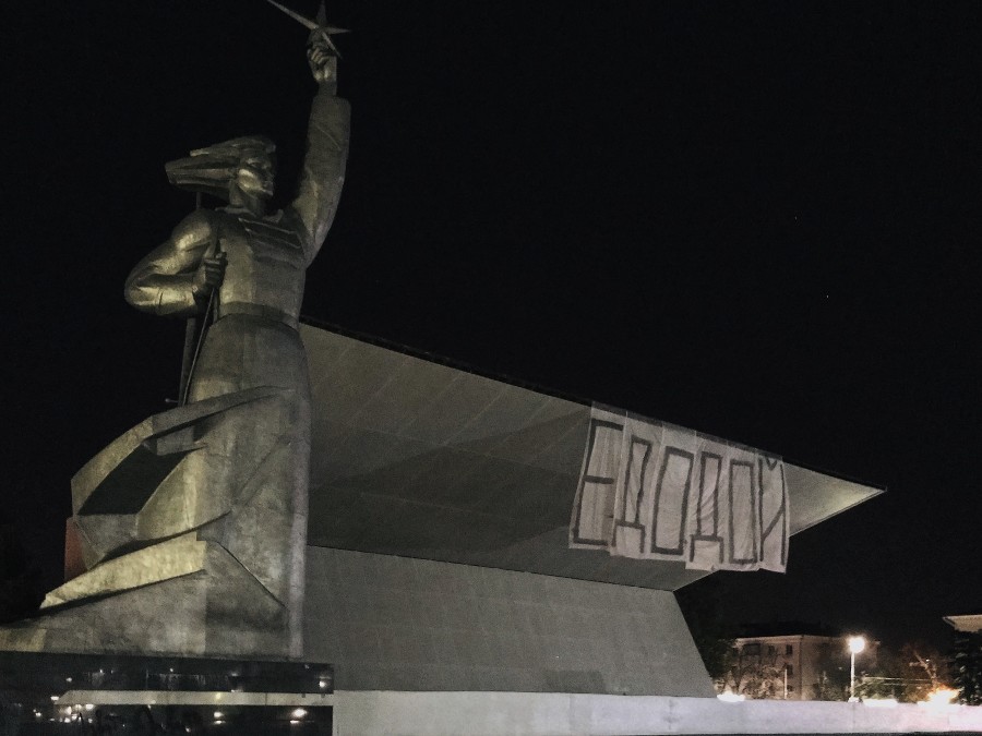 Стрит-артист, известный по надписям ЕДОДОЙ, 4 ноября свесил баннер с реконструируемого кинотеатра Аврора и обратился к бизнесмену и владельцу ФК Краснодар Сергею Галицкому <img src="https://www. yuga. yuga.ru »