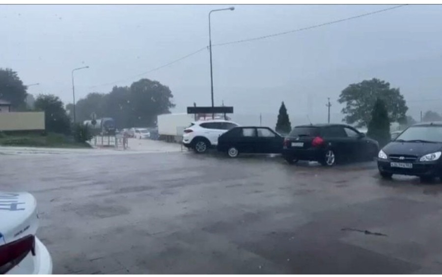 В Сочи затопило участок федеральной трассы, дорогу перекрыли. На улицах Адлера многокилометровые заторы