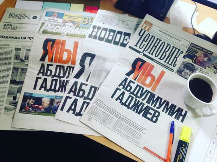 Три дагестанских издания вышли с одинаковой первой полосой с заголовком Я/Мы Абдулмумин Гаджиев
