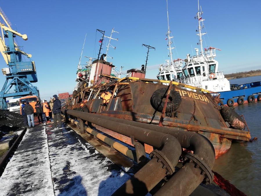 В порту Темрюка начали устранять пробоины в буксире «Прибой»