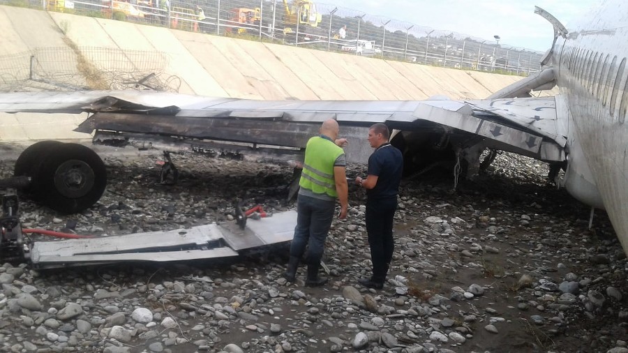 Пассажирский лайнер ночью 1 сентября после посадки скатился в русло реки, произошло возгорание двигателя. kuban24.tv »