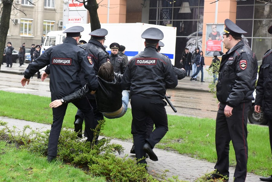 Сотрудники правоохранительных органов задерживают участников шествия по улице Красной в Краснодаре yuga.ru »