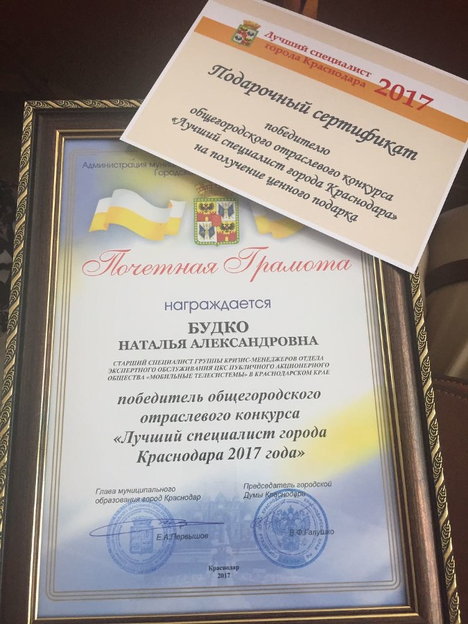 Конкурс «Лучший оператор связи Краснодара 2017 года» выиграла старший специалист центра клиентского сервиса МТС Наталья Будко yuga.ru »
