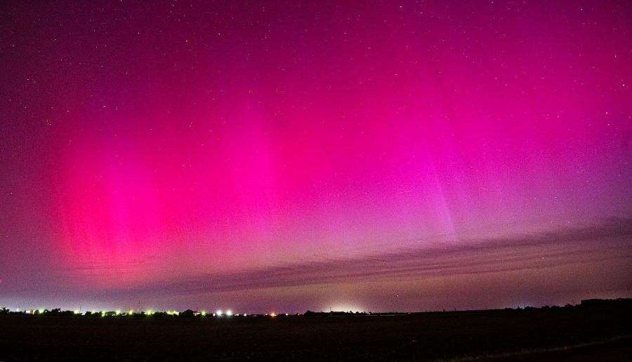 «Малиновое небо»: жители Кубани, Ставрополья и других регионов наблюдали северное сияние