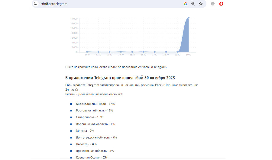 37% российских пользователей Telegram, сообщивших о сбоях, находятся в Краснодарском крае <img src="https://www.yuga.ru/media/eb/20/sboj_tg__jk1hx08.jpg" hspace="5" vspace="5" align="left" /> yuga.ru »