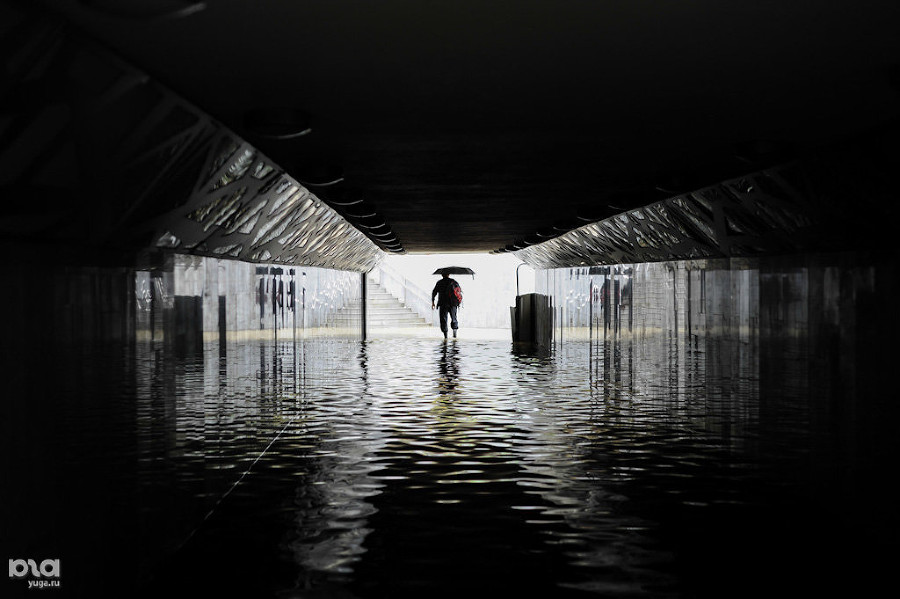 В Армавире из-за сильного дождя затопило улицы, тоннели и дворы. В городе тонут машины