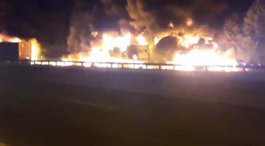 Под Краснодаром на трассе М4 «Дон» столкнулись три грузовика и легковой автомобиль. Машины загорелись. Погибших и пострадавших нет. На месте происшествия работают экстренные службы, передает ТАСС. news.rambler.ru »