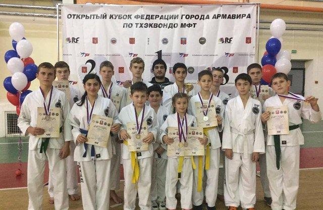 Тбилисские тхэквондисты завоевали 18 медалей на соревнованиях в Армавире Команда ДЮСШ «Авангард» Тбилисского района приняла участие в соревнованиях Открытого кубка федерации города Армавира по тхэквондо
