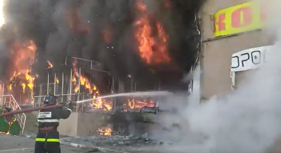 28 октября произошел пожар в торговом центре по ул. Уральской, 212/11. На месте работают подразделения Краснодарского пожарно-спасательного гарнизона МЧС России. Из-за пожара временно изменена схема движения транспорта в направлении выезда из города.